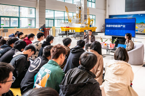 马一峰先以“你是否认为石油行业是夕阳行业”提问,引发了在场同学的思考与讨论,马一峰谈道:“尽管可再生能源的发展正在改变能源消费结构,但石油作为重要的能源和化工原料,在未来仍扮演着不可或缺的角色“。他强调,石油行业的转型升级和技术创新将为从业者带来新的机遇。