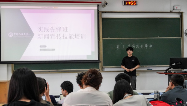 课程后半段由崔跃钟为大家进行新闻宣传技能培训。他从新闻类别及使用范围、写作模式及方法、写作规范、写作注意事项等方面对实践先锋班成员进行培训,并由此扩而充之,详细介绍了新闻稿写作所具备的特点,要素以及要求,同时结合实例让实践先锋班的成员直观感受到不同表达方式、不同叙述视角的差异。在谈及新闻稿写作的注意事项时,崔跃钟强调实践活动的宣传稿要贴合事实、客观叙述、内容充实,表达要简明扼要、清晰明确,切忌过于主观的描述。