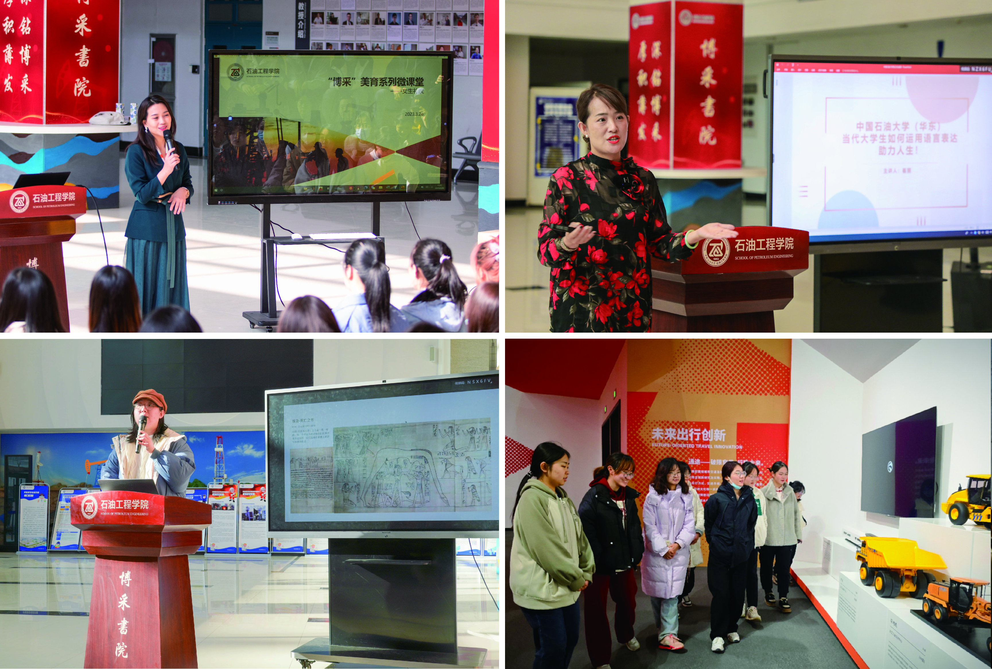 协同内外联动。围绕“拓宽艺术视野、激发艺术兴趣、锤炼审美素养、培育创新思维”四个维度,“博采书院·第二课堂金课”美育系列活动推行“引进来”和“走出去”相结合的交流互动模式。在“引进来”方面,协同校内外团队力量,充分激发全员参与、多方协同的育人效应,以讲座、沙龙、培训及工作坊等多元形式,覆盖传统文化、阅读分享、形体礼仪、语言表达、职场规划和健康教育等多个维度,帮助员工拓宽人生广度、丰富人生体验;在“走出去”方面,善用“社会大课堂”,加强校外美育实践,未来学院也将与地方相关文化艺术单位建立合作关系,联合打造美育实践基地。两年来,品牌活动如火如荼,开展“博采书院·金课”20余期、“团团会客厅”13期、“与教授有约”100余期;举办“博采悦读——阅读100本经典书籍”系列活动、“导学思政”3项工程10类活动,以“面对面”的互动,实现“心连心”的教育,推动学院的美育建设和思政教育不断迈上新台阶。