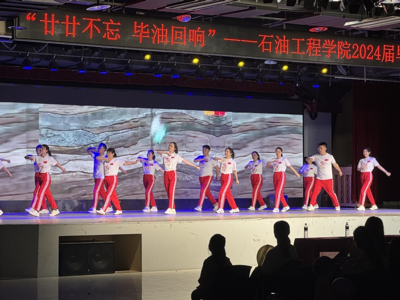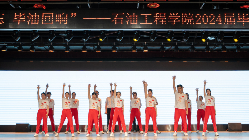舞蹈结束后,2024届毕业生辅导员李昀泽、周晓东为毕业生送上祝福和期待,“愿你们家国同心,播撒能源之火!愿你们历尽千帆,归来仍是少年!”全场齐声高喊,气氛十分热烈。