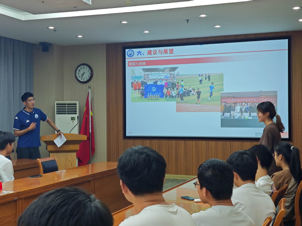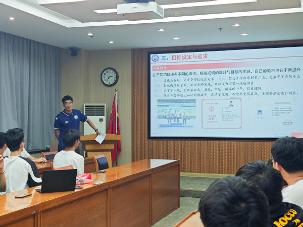 活动伊始,薛冬雨向大家介绍了自己的体育之路,包括自己小学初中高中的运动经历。他说到:“我相信通过自己的努力一定能够实现自己心中的目标。”他身体力行,从而取得今天如此这般成绩。他向同学们介绍在大学期间的训练经历,讲述自己日常是如何进行艰苦训练,不断提升自己技能的过程,“这个过程是痛苦的,但训练完的一天是开心甚至是幸福的”,薛冬雨如此说道。他介绍自己在田径追梦路上遇到的挫折以及是如何从中汲取经验,重新振作,逐步克服它们的。他还与同学们分享了自己的目标设定与追求包括如何树立明确的目标并坚持不懈地为之努力奋斗、如何将体育精神于学习相结合、怎样保持高度地自律并提高自己的毅力等。他还说到体育与学习一样,都需要做好充足的准备上场,比赛前的策略主备及比赛中的心态调整均会影响比赛结果。他与体育之间是相互成就的,通过众多的体育训练,他的身体素质得到提高,性格得到塑造,能够更佳高效地利用时间。最后他分享了一个有关训练时的插曲,研究生导师对于训练的态度由不支持转为一起训练,而后共获校运动会冠军。