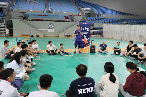 比赛结束后,院研究生会组织部彭鑫主持开展了师生交流环节,全体师生围坐一圈,分享收获与心得。王富化老师肯定了本次羽毛球赛对丰富研究生校园生活和促进导学关系共融的意义,鼓励导师和同学们在走出课堂和实验室的同时,能够充分享受运动的乐趣,不断增进师生情谊。杨永飞老师结合自身经历指出研究生在学业科研之余参与体育运动的重要性,希望同学们可以在释放压力的同时,享受运动带来的快乐。