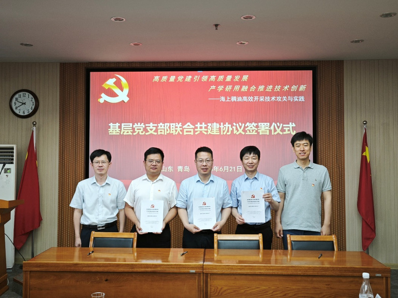 三个党支部共同签署了校企党建共建协议。共建各方表示,将基于“校企融合、互通互补、协同创新、共谋发展”的原则,着力建设长期共建机制,依托基层党支部联合共建活动,践行工程地质一体化、科研生产一体化、产学研用一体化等“三个一体化”理念,发挥基层党支部战斗堡垒和党员先锋模范作用,攻坚克难,在强化党建、党建科研融合、技术攻关、人才培养、技术交流等领域融合提升,为海上稠油高质量发展贡献力量。