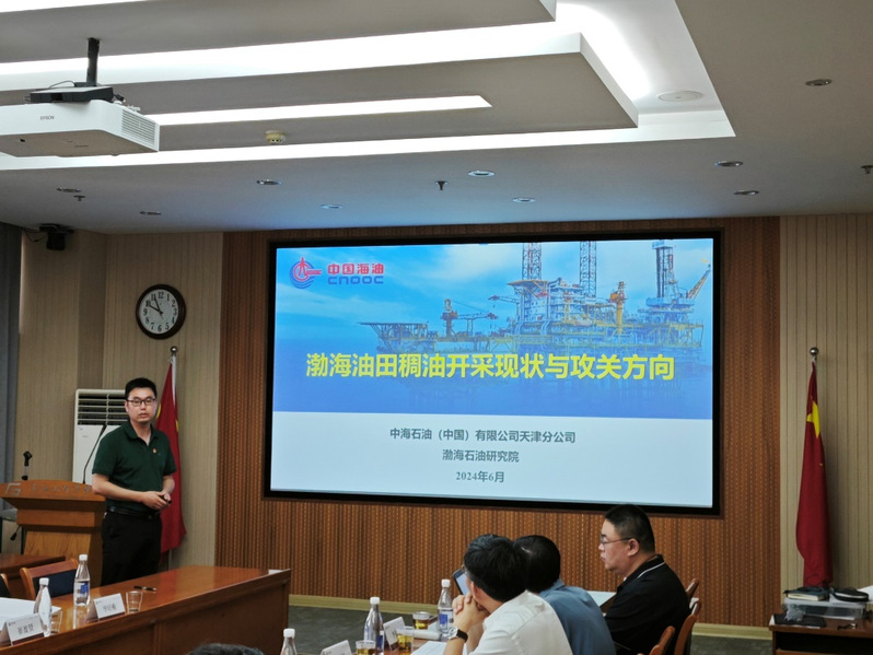 在高质量发展与技术交流环节,参会人员聚焦科学研究与生产需求,就稠油开采相关技术领域进行交流探讨。张华、崔盈贤分别作了题为“渤海油田稠油开采现状与攻关方向”“稠油热采用高温堵调体系”的学术报告。李松岩、齐宁、董长银、吴飞鹏、王杰祥分别作了题为“稠油低碳高效开采理论与技术进展”“稠油热采井堵调技术与酸化解堵技术研究进展”“疏松砂岩稠油油藏防砂控水技术研究与进展”“物理波场强化开采研究与进展”“潜油直驱螺杆泵举升成套装备设计及应用”的学术报告。双方围绕渤海稠油油田的高效开发开展了深入的技术交流,并就渤海稠油的攻关方向交换了意见。