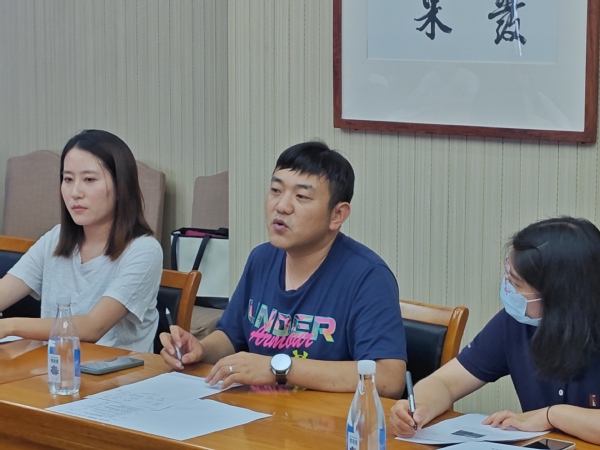 【本站讯】6月28日,石油魂宣讲团于工科楼B座347会议室召开集体培训会。会议由石油魂辅导员工作室负责人王静主持,马克思主义学院教师王鹏翔、思想政治教育专业硕士研究生韩雪、王梦阳出席,20名宣讲团成员参会。