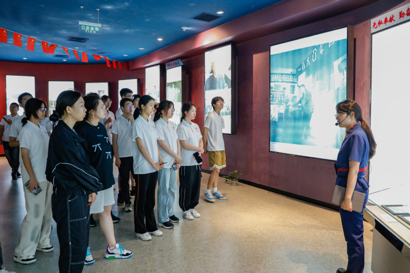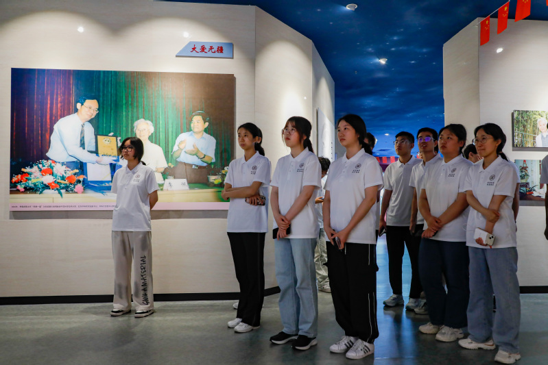 7月4日,实践团踏入郭永怀事迹陈列馆。这座位于荣成博物馆一层的展馆,不仅承载着郭永怀先生辉煌的科员工涯,更是他对国家和民族深情厚谊的见证。展览区内,500多张珍贵照片、200多件文物资料以及4个视频记录,生动再现了郭永怀先生从求学、科研到献身国家事业的壮丽人生。他的一生将全部身心都献给了“两弹”事业,在遭罹空难的生死关头,将国家核机密文件死死抱在怀中。他作为“两弹一星”元勋,以卓越的科研成就和无私的奉献精神,激励着一代又一代的后来者。实践队成员驻足于每一件展品前,认真聆听讲解,深刻感受到科学精神的伟大与崇高。在多媒体厅,实践队成员观看郭永怀生前事迹,仿佛将实践队员们带回了那个激情燃烧的岁月,大家更加直观地理解了郭永怀先生为国家科技事业所做出的巨大贡献,以及他那种“以身许国,何事不敢为”的豪情壮志。