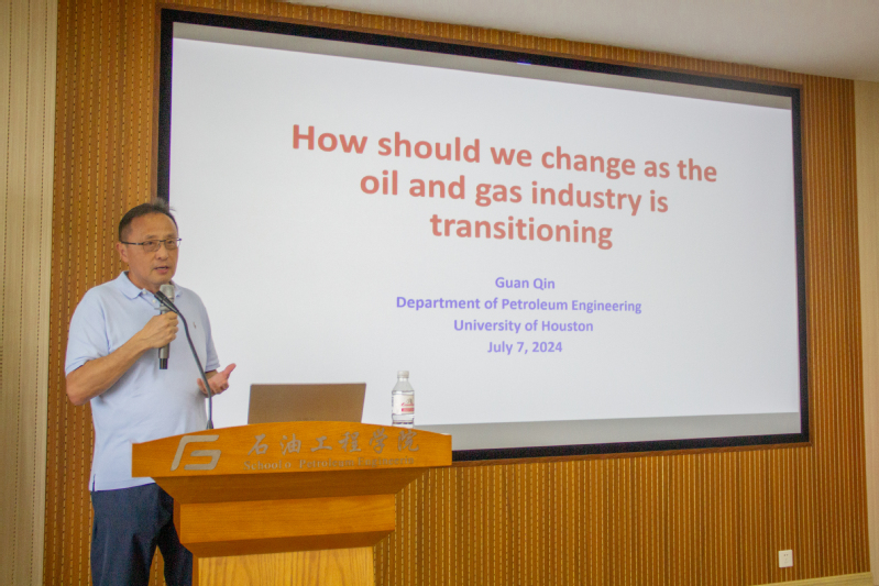 Guan Qin教授以“How should we change as the oil and gas industry is transitioning”为题,与大家共同探讨了面对石油与天然气能源转型,从事石油行业的人才应当如何应对的热点问题。他从当前行业北背景、油气产业转型现状、如何重新定义我们的研究方向及个人建议四个方面,就上述主题展开分享。而后,他根据个人经验谈及国内外石油领域人才就业现状的差异。他指出,国内石油行业就业前景依旧乐观,石油领域仍需大量人才,同时鼓励在座同学努力学习专业知识,提高专业能力,对未来的就业与科研树立信心。