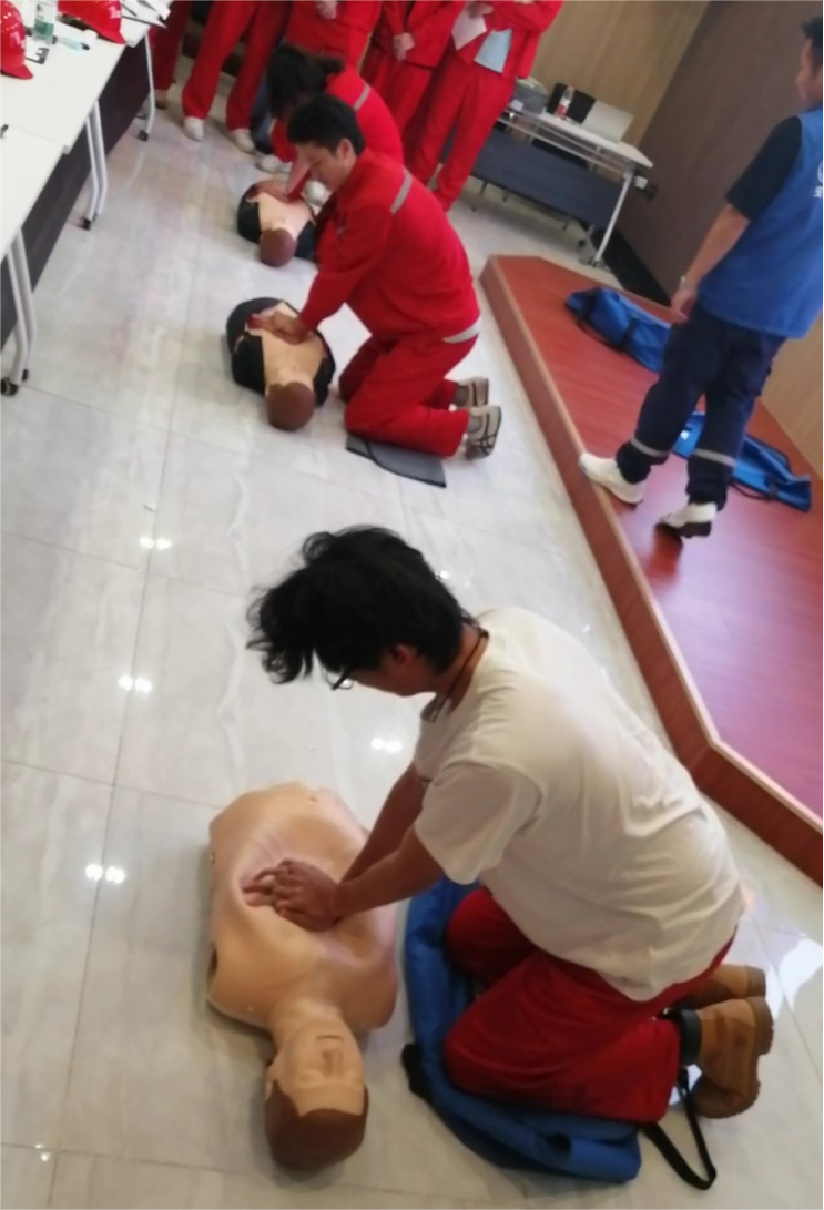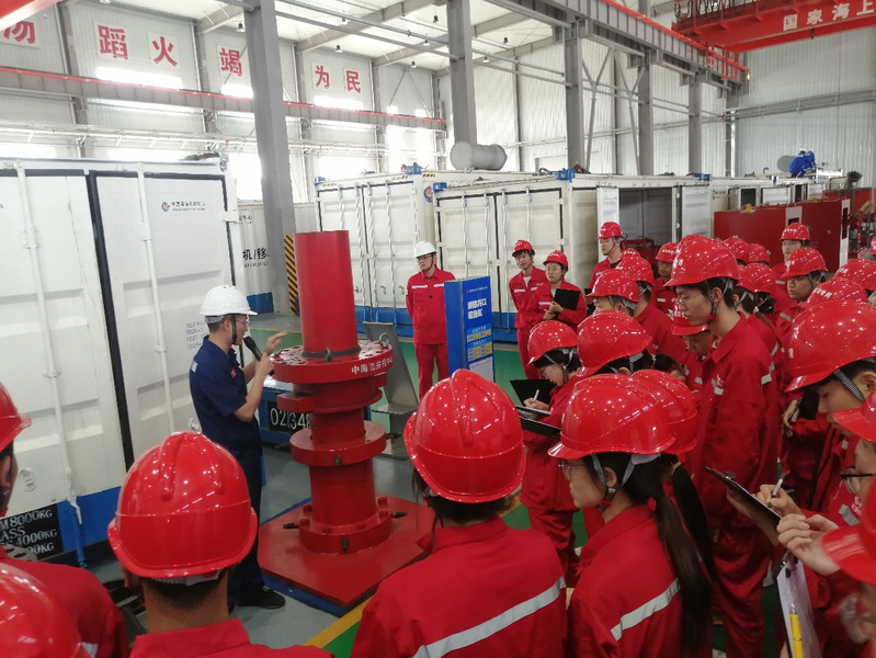 在中国海油安全生产培训中心,现场专家通过结合实际生产介绍了海洋平台的健康、安全、环保要求,员工逐个进行了心肺复苏实训。在中海油井控中心,员工们了解了井喷的危害、控制措施及应急救援装备的使用。