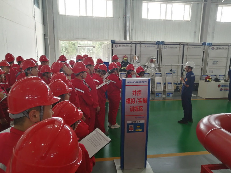 在中国海油安全生产培训中心,员工们学习了钻具及井控装备,开展了钻井模拟实操,学习了油气生产设施及生产过程,逐项学习生产分离、原油处理、污水处理、通球、离心泵启停、化学剂注入等工艺流程,学习了采油树、井口控制盘、泵、阀、换热器、温度/压力/流量/液位测量仪表等装备,学习了DSC控制系统、火气系统和紧急关断系统,练习了劳保用品穿戴、心肺复苏、限制空间逃生、高空速降等应急逃生技能。