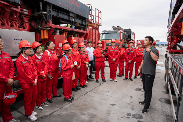 随后,博士团的成员们前往井下作业公司进行深入交流,了解学习现场所使用的各类压裂技术及配套设备的运作原理与应用。压裂技术作为油气田开发的重要手段,其重要性不言而喻。亲眼见证这些“巨无霸”,让成员们更加深刻的学习了压裂技术的力量与魅力。
