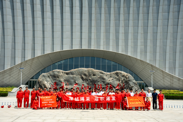 博士团成员们来到石油科技馆,分别参观了历史馆和科普馆,一幅幅珍贵的照片、一件件尘封的工具、一段段生动的文字,共同编织出一幅幅波澜壮阔的石油画卷。成员们驻足凝视,仿佛能听到那遥远年代里钻井机的轰鸣,感受到老一辈石油工人面对恶劣环境、克服重重困难的坚韧与毅力。他们在荒地中披荆斩棘,在盐碱地上开垦希望,用汗水和智慧书写了我国油田从无到有、从小到大的壮丽篇章。这份艰苦奋斗的精神,与“深钻博采,厚积薄发”的石工精神交相辉映,如同璀璨星辰,照亮成员们前行的道路,激励着各位不忘初心,继续前行。