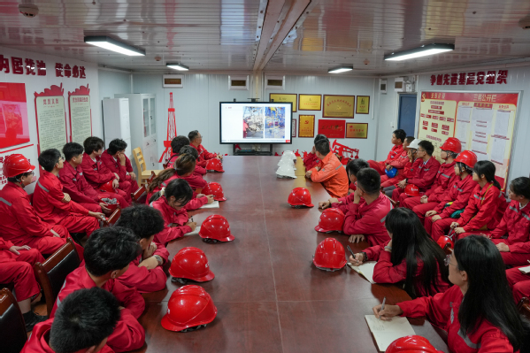 7月16日,博士团成员们来到了胜利石油工程公司黄河钻井总公司70180SL钻井队,学习了70180SL钻井队的辉煌历史和最新技术成就,从超深井、水平井的钻探技术,到智能化钻井平台的运用,每一项技术突破都凝聚着团队的心血与智慧,展现了我国石油勘探开发领域的强大实力。其中着重学习了自动化设备,不仅提高了钻井效率,还大幅降低了人力的耗费,展示了黄河钻井在装备升级上的卓越成就。
