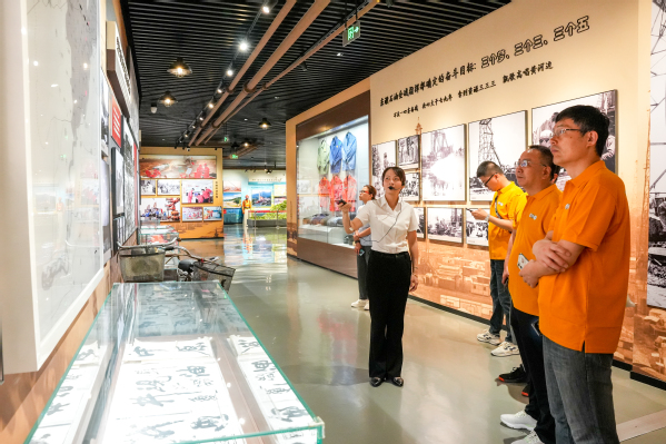 19日下午,研习团部分师生前往中原石油工程铁军文化传承馆,通过讲解员声情并茂的讲解,在《孕育铁军》《成就铁军》《壮大铁军》《见证铁军》《赋能铁军》《铸就铁军》六大部分中, 将“特别能战斗、特别能担当、特别能超越”的中原铁军精神展现得淋漓尽致,集中体现了中原石油工程队伍践行“我为祖国献石油”、保障国家能源安全的责任担当,展示了中原铁军服务国内油气勘探开发艰难创业征程、助力“一带一路”建设所作的重要贡献。