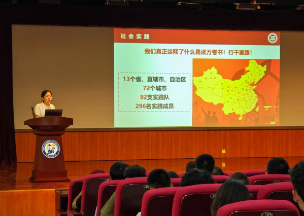 在社会实践方面,张家馨对学院同学的社会实践参与情况做出了总结。她提出“读万卷书,行千里路”,鼓励同学们多去参加社会实践,拓宽自己的视野,增长自己的见识。此外,她还对纪律安全进行了相应强调,从人身财产安全、宿舍卫生、卫生间吸烟问题以及网络诈骗等方面,提醒同学们在新的一年生活中要遵规守纪,确保自身安全和校园秩序。