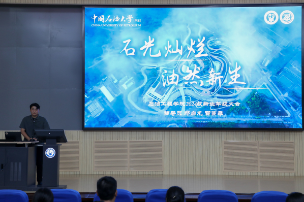 会议伊始,郑启龙对全体新生的到来表示热烈欢迎,并概述本校的历史进程,学院概况。在谈及学习时,郑启龙对新生着重强调:明确学习才是第一要务,要从被动学习转变为主动学习,并努力发展为创造性学习,始终保持一颗好奇心。并告诫同学们不要做“躺平”的佛系青年,要脚踏实地,再仰望星空。此外,他对石油产业的未来局势进行分析,展示毕业生就业等相关数据,为新生树立专业自信,指明学习方向。