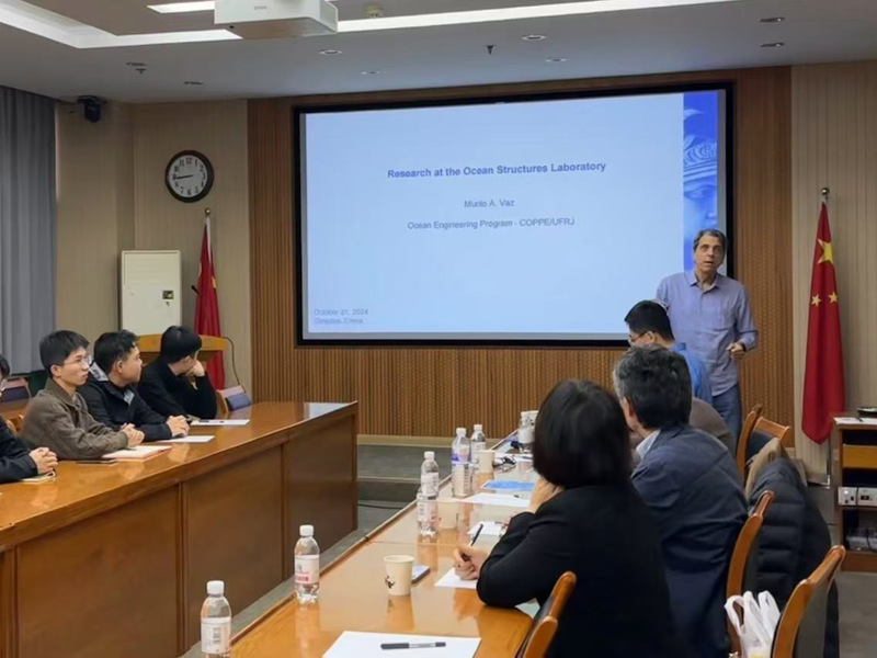 Segen Farid Estefen院士高度评价了学院在科研创新与人才培养方面取得的成就,并表示愿意进一步推动中巴两国在相关领域的合作与交流。Segen Farid Estefen院士与Murilo Augusto教授分别作了题为“能源转型中的海洋新能源发展”和“海洋结构实验室研究进展”的学术报告。