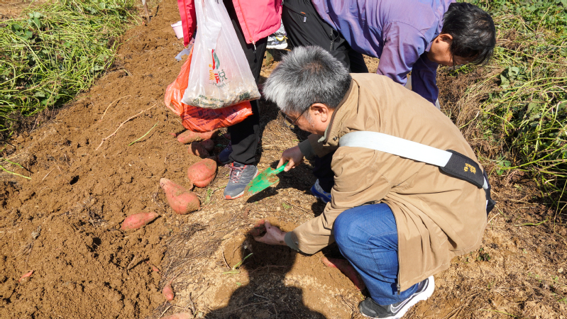 在采摘园,老师们积极参与劳动实践,亲手摘水果,刨地瓜,捡花生,忙得不亦乐乎。在体验的过程中感悟农民的艰辛,在劳动的汗水中感受收获的快乐,更加珍惜劳动果实,恒念物力维艰。在绿色硅谷,老师们了解了无土栽培技术,了解传统农业与现代科技农业的差异,感受到现代科技在农业生产中的重要作用。