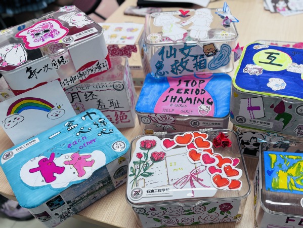 绘制宣传画,充分展现了创意与团结协作的精神。那些代表女性力量的标语装饰在卫生巾互助盒上,这些醒目的文字如同呐喊,彰显出女性的自信与独立。在此过程中,志愿者们积极创作,互帮互助,充分展现出志愿者们对女性需求的深切关注。