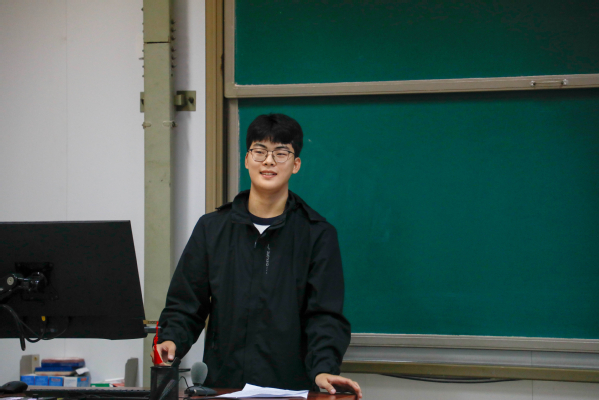 接着,杨兴潭作为实践先锋模范为先锋班学员们带来实践先锋班第一课——“青春实践启示录”,重点针对实践技巧与要求作出分享,围绕社会实践的过程认识,团队协作的重要性等方面讲述了选题、成果培训等。杨兴潭表示:“创新求变,大胆去做,才能真正理解实践意义之所在!”