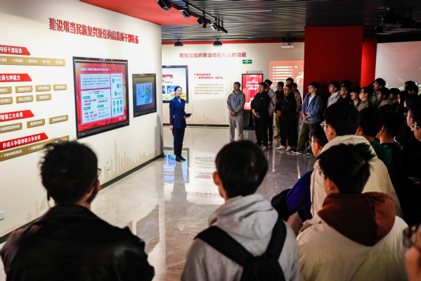 据5G高新视频党建教育基地工作人员介绍,该基地将党史党建知识同5G高新视频技术深度结合,创新“5G+党建”新模式。整个基地分为政治统领、理论武装、堪当重任、组织建设、正风肃纪、反腐攻坚、自我革命、党建引领八个部分,涵盖了丰富的党建内容。云上长征路特色视频,生动还原红军长征时路途的艰辛,员工身临其境地感受到红军长征遭遇的重重险阻;通过体验360°全景AI互动屏,员工感受党建学习数字化智能化带来的独特魅力,深刻领悟党的光辉历程和伟大精神。在多种5G高新技术的助力下,员工跨跃时间与空间,与革命先辈们对话,同历史场景交互,目睹党在百年的斗争历史中坚守初心理想、克服一次又一次的困难,不断成长,发展壮大。本科生21级发展对象马智强表示:“这里的数字化、智能化让我领略到了科技为党建带来的全新活力,也让我对党的理论和使命有了更为深刻的认识。”
