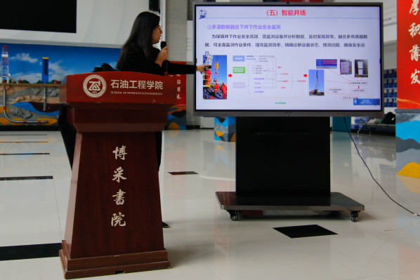 活动伊始,张黎明简要介绍了人工智能的概念,深入浅出地剖析了人工智能的发展现状,阐述其核心内容,并展示了人工智能的强大学习能力和其进化历程,让参会成员受益匪浅。随后,张黎明分别介绍了智能油田的发展趋势与智能油田研究新进展,并强调了加快能源全产业链的数字化智能化升级的重要性,提出油田智能化是未来发展的必然趋势。最后,张黎明对参会成员提出了自我规划的要求,她提出:“规划是为了我们更好地接纳和面对现实,从高考到考研,我们都面对着巨大的竞争,我们要学会成长,成为最好的自己。”