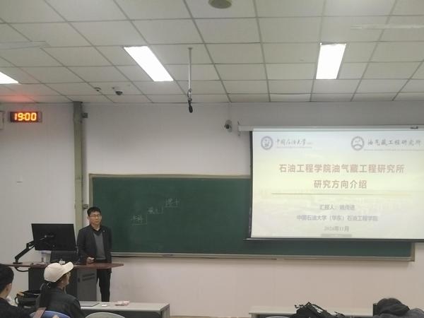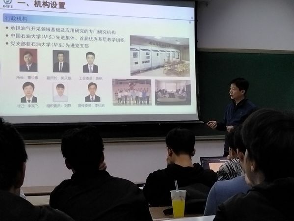 紧接着,采油研究所的书记李宾飞教授阐述了油气开采工程专业的主要方向及研究领域。包括提高采收率技术、油气藏评价与描述、油气田开发工程优化设计等多个方面。他通过案例和前沿的研究成果,让同学们对采油专业的深度和广度有了更加直观的认识,也让大家对未来的研究方向有了初步的思考和规划。