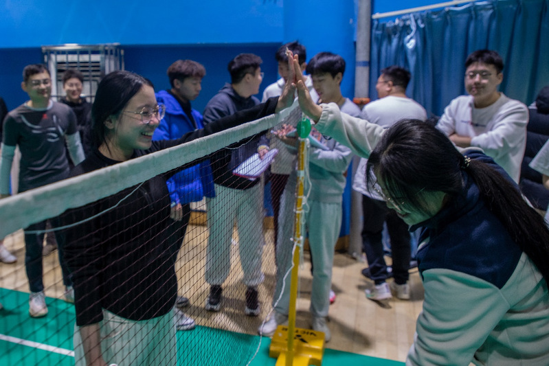 本次比赛由学院工会主办,学院教职工羽毛球协会及研究生会承办,依次采用“小组赛”“晋级赛”和“决赛”的赛制,每场比赛分男单、男双、混双、女单、女双共五个项目,每场比赛由各队队长抽签决定比赛队伍。赛前,各参赛队伍精心排兵布阵、积极调整战术。赛时,各参赛选手斗志昂扬、默契配合、将个人球技发挥的淋漓尽致,观众们激情澎湃,呐喊助威声此起彼伏。赛后,各选手礼貌握手、互相鼓励、积极复盘。