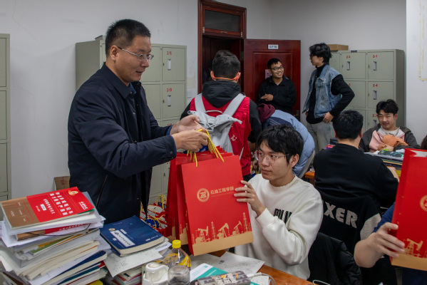 2021级辅导员杨琪硕作动员讲话,并就最近考研自习室中同学们的复习状态提了几点建议,为考研学子加油鼓劲,祝福大家考研上岸。与此同时,学院领导将一份份“上岸福袋”精美大礼包赠予每位考研学子,传递了学院的殷殷祝福和美好祝愿。