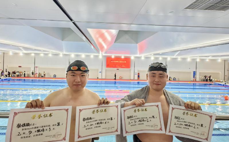 公司其他老师在各自参赛项目中也全力以赴。男子乙组100米自由泳赛场上,赵欣展现出强大的爆发力,他的泳姿矫健有力,在泳池中快速穿梭,博得阵阵喝彩;陈泽华在男子乙组100米仰泳比赛中发挥稳定,凭借良好的身体协调性和奋勇拼搏的精神,逐浪泳池。