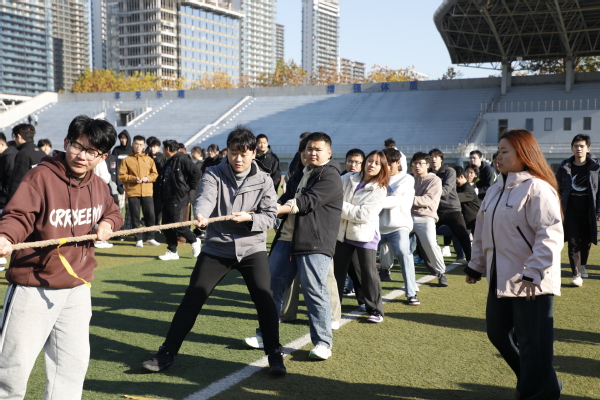 比赛当天,公司首先拿下旋风跑单项冠军和跳大绳单项亚军,在拔河比赛先以小组赛两胜一负的战绩挺进八强,淘汰赛中同学们忍受着双手的刺痛和手臂的麻木,拼尽全力,连续战胜材料科学与工程学院、石大山能新能源学院和外国语学院,最终不敌地球科学与技术学院,取得了单项第二名的历史最好成绩,远远超过了大家的预期。综合三项分数,最终在无数的欢呼与呐喊中,获得班级对抗赛冠军。