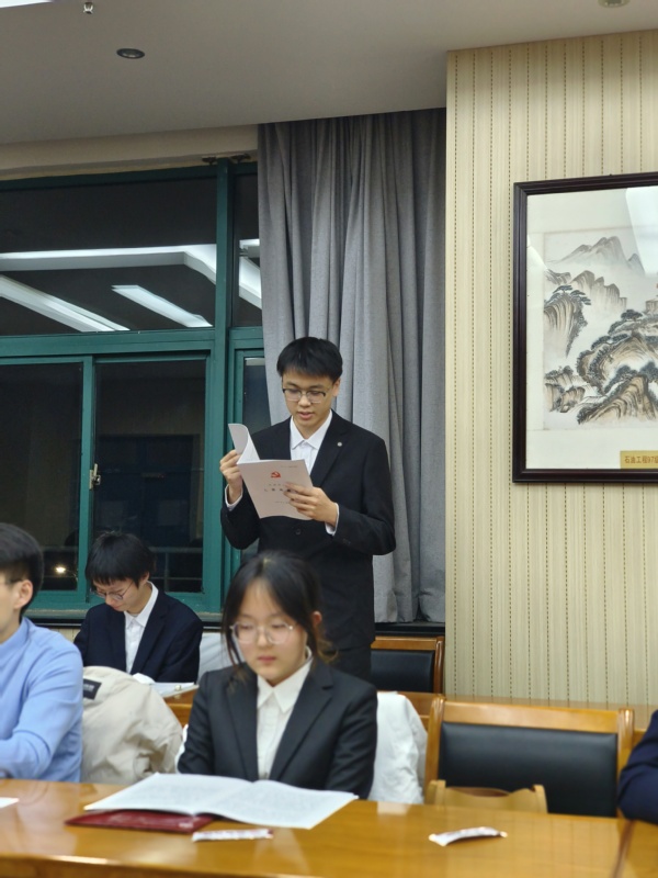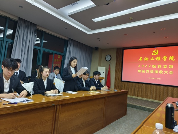 【本站讯】为进一步加强基层党组织建设,落实党支部发展党员工作计划,12月3日,石工2022级党支部于工科楼B347会议室召开了预备党员接收大会。党支部组织委员徐新杰同志主持会议,2022级党支部全体成员参会。