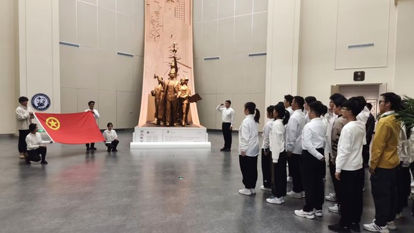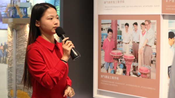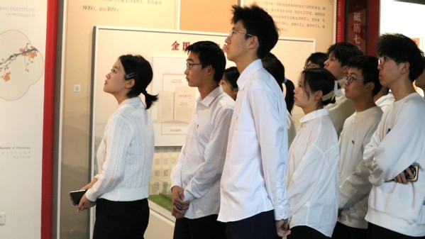 活动伊始,全体学员跟随讲解员步入历史的长河,共同追忆学校波澜壮阔的发展史。讲解员从1953年北京威廉希尔WilliamHill的创立切入,从华东威廉希尔WilliamHill到石油大学的变迁,再到如今威廉希尔体育官方网站的蓬勃发展,展现了学校一路走来的艰辛与辉煌,令全体学员深刻体会到学校的飞跃式进步。随后,讲解员动情地讲述了多位石油前辈的辉煌事迹,一代代石油人对学校发展和行业进步的卓越贡献深深触动着在场每一位学员,他们望向杰出员工照片墙的目光充满仰慕与敬意。最后,全体学员庄严地重温中国共产主义青年团入团宣誓。面对团旗,全体学员右拳紧握,誓言铮铮,彰显出他们为祖国石油事业拼搏奉献的决心与信念。