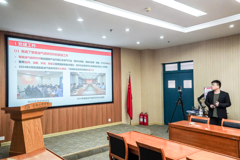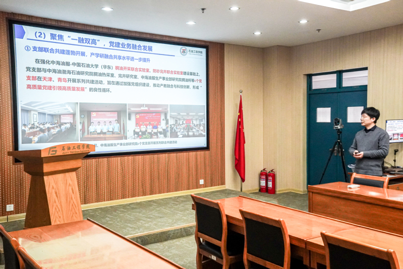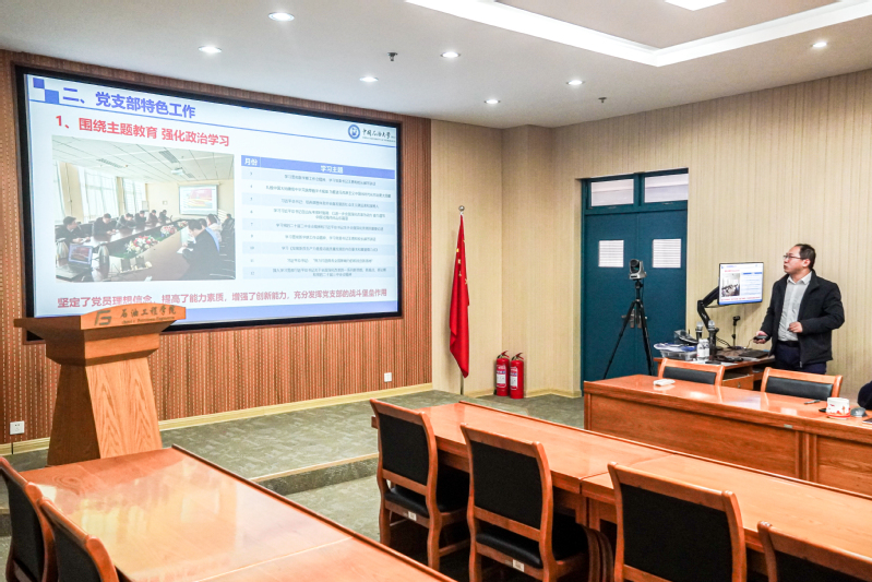 油气藏工程研究所党支部、油气井工程研究所党支部、油气开采工程研究所党支部、油气田化学研究所党支部、海洋油气工程研究所党支部、智能油气田研究所党支部、实验教学中心党支部、学院机关党支部等8个党支部书记聚焦党纪学习教育开展情况、履行工作责任情况、工作进展情况和成效、推进创新性工作情况、存在的突出问题及加强和改进工作的思路措施等五个方面进行述职,重点围绕学习贯彻习近平新时代中国特色社会主义思想,贯彻落实党的二十大、党的二十届三中全会、全国教育大会及学校第十二次党代会精神情况,以及推进“一融双高”取得成效等方面做了汇报,全体参会人员进行现场打分评议。