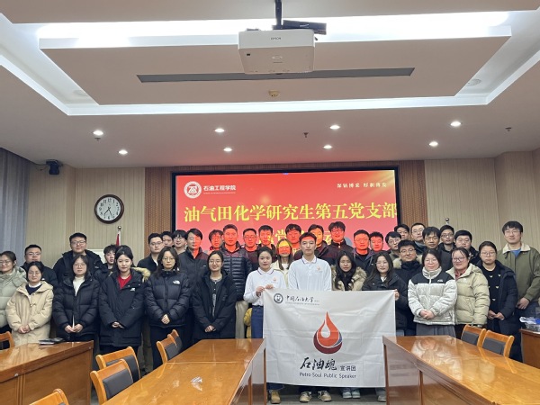 【本站讯】为将石油精神、铁人精神讲述出来,传承下去,让更多的人了解石油、热爱石油,为国家石油事业贡献自己的力量。2025年3月4日,油气田化学研究生第五党支部于工科B347邀请“石油魂”宣讲团成员联合开展主题党日活动,会议由支部书记侯德林主持,宣讲团成员韩雪、刘智睿以及支部全体成员参加。