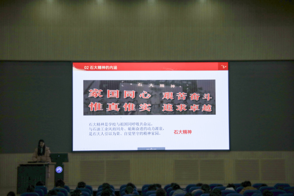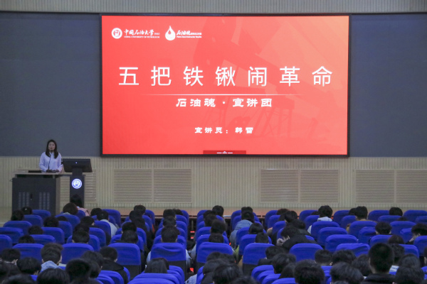 组织此次活动的初衷,就是要让新时代石油学子触摸历史脉搏,在石油精神的滋养中铸就专业信仰。宣讲团成员韩雪以“五把铁锹闹革命”的动人故事开场,通过吕玉莲等五位石油家属在戈壁滩上开荒垦田的壮举,生动诠释了“自力更生、艰苦奋斗”的石油人品格。在场员工凝视着大屏幕上斑驳的历史照片,无不为前辈们“宁可少活二十年,拼命也要拿下大油田”的豪情所震撼。
