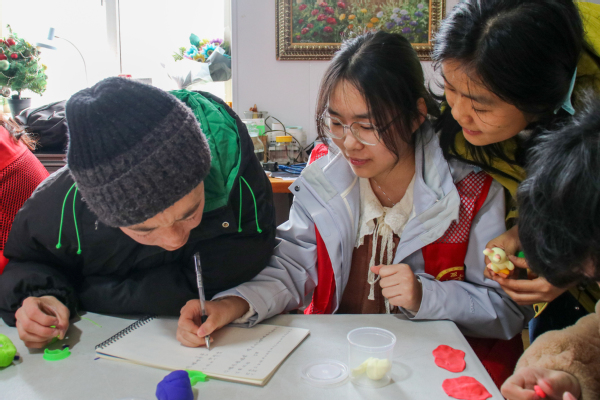 在活动过程中,成员们还陪伴孩子们聊天,即使面临着重复的提问,即使交流并不总是顺畅,成员们始终保持着微笑和耐心,努力理解他们的想法,并给予积极的回应。