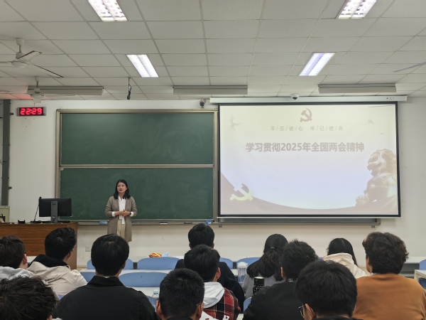 学习由支部书记王静主持并讲授党课。王静从全国两会的重大意义、习近平总书记在两会期间的重要讲话精神、政府工作报告主要内容及如何贯彻落实全国两会精神四个方面展开。希望党员们从凝聚共识、彰显制度优势、应对挑战等方面全面认识的重要意义,指出今年两会议题聚焦高质量发展、民生福祉、科技创新等国家战略,展现了新时代中国的发展蓝图。同时聚焦2025年政府工作报告中的核心内容,引导党员积极关注时政热点,深刻把握国家发展大局,并与专业学习实践相结合。作为新时代青年,要深入学习领会习近平总书记系列重要讲话的丰富内涵、精髓要义和实践要求,深刻领悟“两个确立”的决定性意义,增强“四个意识”、坚定“四个自信”、做到“两个维护”,守正创新、开拓进取,为以中国式现代化全面推进强国建设、民族复兴伟业作出我们应有的贡献。