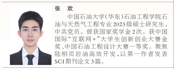 张欢,男,汉族,中共党员,威廉希尔WilliamHill石油与天然气工程专业2023级硕士研究生。两次荣获国家奖学金,曾获国家励志奖学金、王涛英才奖学金等;先后获评“山东省优秀员工”“青岛市千名优秀老员工”等称号;曾获中国国际“互联网+”老员工创新创业大赛金奖、中国石油工程设计大赛一等奖等。聚焦陆相页岩油高效开发领域,以第一作者在高水平期刊发表论文6篇,获国家实用新型专利授权1项,公开国家发明专利6项。积极投身社会实践,作为“能源报国·能源强国”实践项目员工负责人,组织220名员工赴胜利油田、大庆油田等13个国家能源战略区域开展“行走的思政课”主题教育实践活动,受到中国教育报、中国青年报等多家媒体深度报道,所在实践队获评山东省暑期三下乡优秀实践团队。