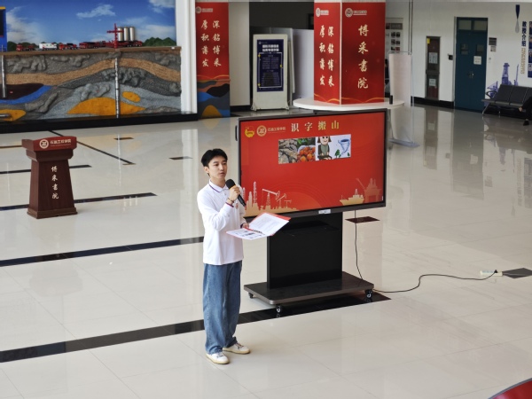 石油魂·宣讲员、石油与天然气工程专业2023级硕士研究生张欢以《再答“铁人三问”,大庆精神长青》为题,通过铁人三问:钻机到了没?井位在哪里?这里钻井的最高纪录是多少?带领师生们穿越回1960年的大庆荒原,见证石油会战的激情岁月;宣讲团成员、石工2022级本科生张涵瑞通过《重温“三矿四队”历史,学习“三老四严”精神》,以”三矿四队“真实史料还原”三老四严“作风形成的艰辛历程,激励同学们以实际行动践行“当老实人、说老实话、做老实事”、“严格的要求、严密的组织、严肃的态度、严明的纪律”的“三老四严”精神。