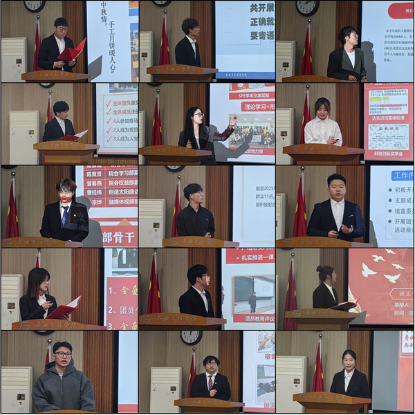 本次述职以“总结经验、查找不足、共谋发展”为主题,各支部书记从组织建设、团日活动开展、自我反思与未来规划四个维度进行汇报。在组织建设方面,部分团支部通过“理论学习+实践锻炼”模式强化思想引领,或创新投票管理机制提升工作效能;团日活动注重结合专业特色与青年需求,既有聚焦科技赋能的实践课堂,也有融合红色教育的沉浸式学习场景。各支部书记坦诚剖析工作短板,如部分活动参与度不均衡、品牌特色不突出等问题,并提出针对性改进方案。