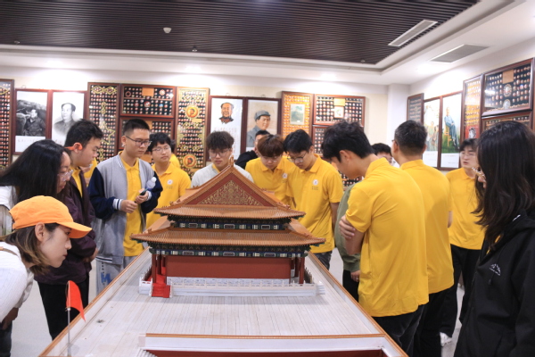 5月17日上午,实践团来到毛泽东像章纪念馆。馆内珍藏的30余万枚像章,横跨革命战争、社会主义建设等多个时期,串联起中国共产党带领人民奋斗的历程。“革命岁月”展厅的粗糙木质像章,见证了战争年代人民对领袖的拥护;“建设时期”展厅的珐琅彩像章,折射出新中国的蓬勃朝气。 讲解员特别介绍一枚刻有“独立自主、自力更生”字样的像章,讲述了20世纪60年代中国人民在艰苦条件下坚持自主创新的决心。 队员们通过像章的材质、图案、铭文,触摸历史温度,深刻理解“没有共产党就没有新中国”的深刻内涵。