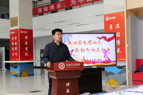 【本站讯】为纪念五四青年节,深入传承与弘扬五四精神,5月9日,本研(石)2302团支部与碳储2401团支部于工B大厅联合举办五四题团日活动。本次活动邀请学院团委书记杨琪硕讲授微团课,2023级辅导员张家馨指导绘制青年节长幅画报,旨在引导青年团员在实践创作与理论学习中,深刻领悟五四青年节的精神内涵及其与青岛的历史渊源。