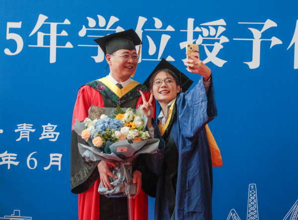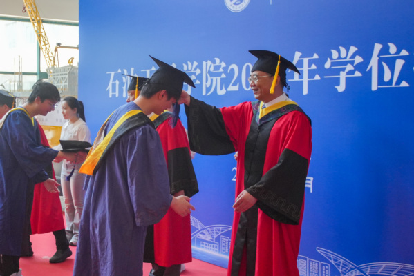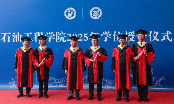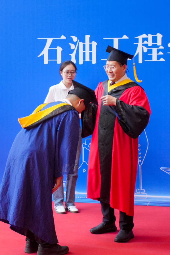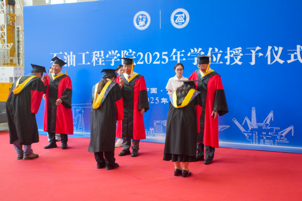 仪式尾声,陈银吨寄语毕业生:要牢记“惟真惟实”的校训与“深钻博采,厚积薄发”的院训,践行“为中国加油、让人生闪光”,传承“石油精神”“石大精神”,勇担家国使命。母校永远是你们的家!