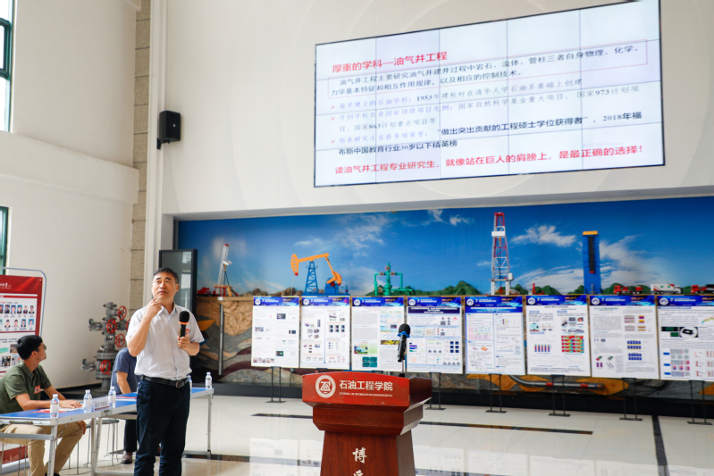黄维安主持活动。在观看学院宣传片后,黄维安从战略行业、公司产品、招考政策、育人支持等方面对学院研究生招生政策展开介绍。来自油气井工程研究所、油气开采工程研究所、油气藏工程研究所、油气田化学研究所、海洋油气与水合物研究所、智能油气田研究所的六位导师代表依次介绍研究所概况、团队力量、研究方向及人才培养情况,同学们聚精会神,认真记录,不时讨论,现场气氛轻松活跃。