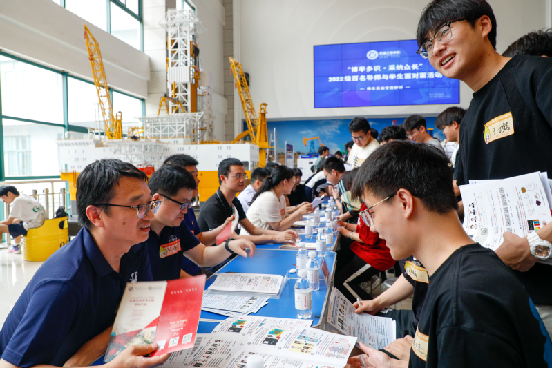 亲临现场的导师既有教学名师、学科带头人、973首席科学家等“大牌明星”,也有成果突出、势头正猛的年轻导师。在自由交流环节,同学们积极向心仪的导师快速聚拢过去,“老师,如果我想读您的研究生,您对我有什么要求吗?”“老师,咱们这个研究方向具体是做什么?“,同学们积极提问,话题也变得越来越宽泛。师生们积极交流,气氛火热融洽,许多员工表示收获良多,并表示将与导师进行更深入的交流。石油工程专业2022级本科生李传锜在交流后表示:“我们正处在深入学习专业课程、需要对自我发展精确规划的时期,学院的这次活动帮我们提前指路,早定准星,帮助非常大!通过各研究所的‘硬核’介绍,我们深感学院学科实力雄厚,既有多元的国际化人才培养平台,也有完善的研究生奖学金制度,希望我们能继续在学院走好研究生的成长之路。”