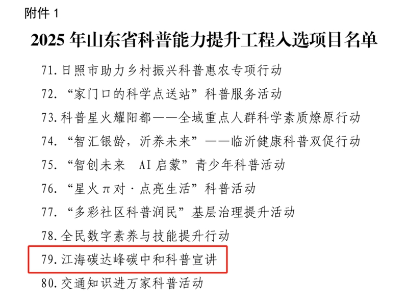 公司“江海碳达峰碳中和科普宣讲”科普活动入选山东省科普能力提升工程