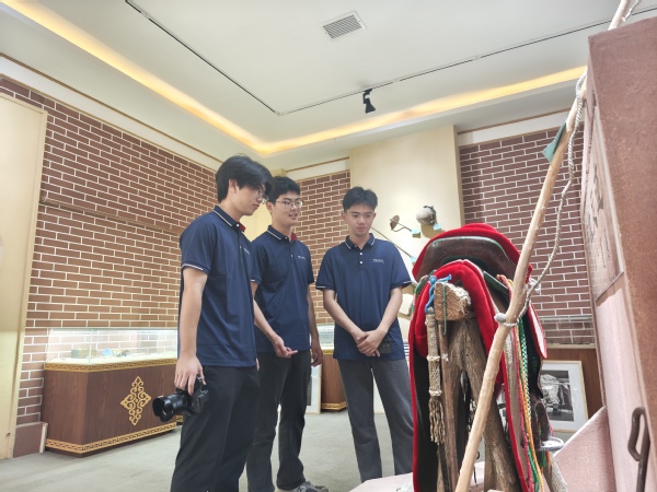 紧接着成员们来到了甘旗卡第一高级中学的民族团结馆与蒙古族民俗文化馆,这里没有枯燥的理论说教,玻璃展柜里的蒙古马鞍、手工皮靴等民俗器物,无声诉说着游牧文明的千年传承;墙上的图文展板,从古代茶马互市到现代民族共居,徐徐展开民族交融的壮丽长卷。“原来课本上的民族团结,在这里变成了看得见、摸得着的故事。”实践队员孙珑赫感叹道。