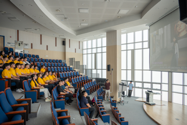 在校方工作人员的引导下,实践团前往未来学习馆的元宇宙多媒体实验室、5G智能学习工厂、无人汽车试验室、氢能实验室、扩展现实实验室和虚拟现实实验室参观学习,了解韩技大学特性化教育课程与差异化教育环境。