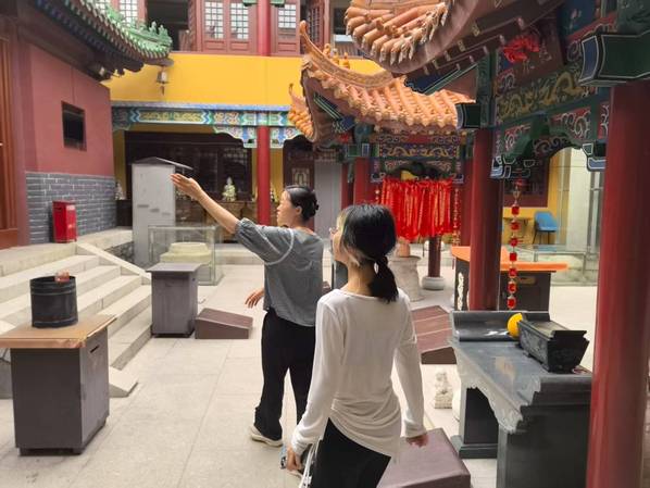 实践队队员听讲解员讲解寺庙建筑特色