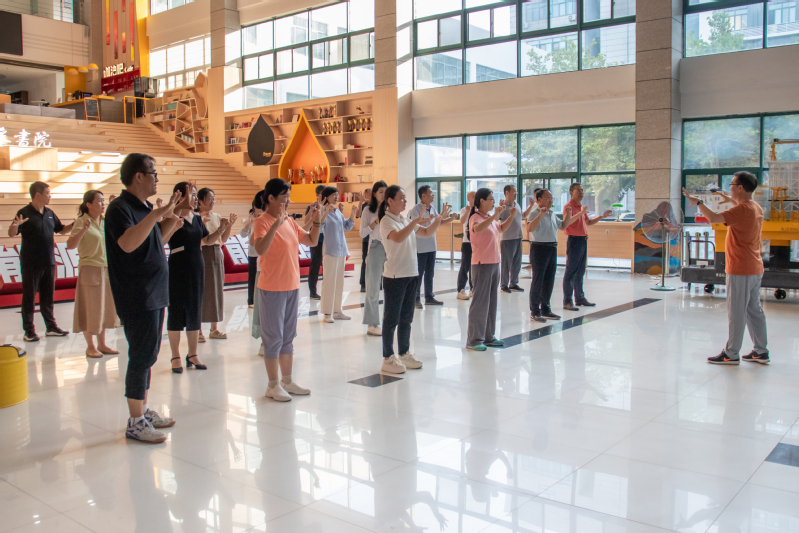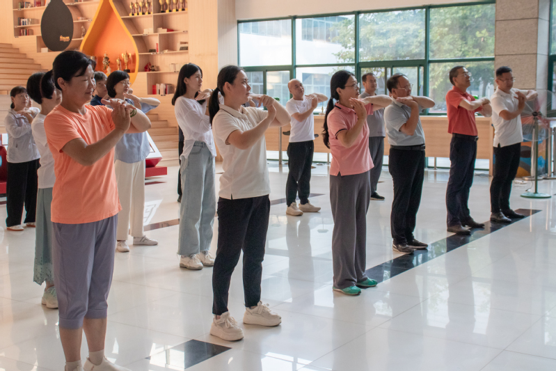 为关心关注教师身心健康,促进全民健身与教师健康深度融合,学院工会主办、教职工文艺协会承办“全民健身进校园 八段锦韵伴我行”——八段锦教学暨教师节送健康活动。活动邀请体育教学部宋清老师担任专家,宋老师首先从“心肺功能、身体力量、柔韧练习”三个方面为老师们详细介绍了健康养生知识,带领老师们做了全面充分的热身活动。随后,他向老师们讲述了八段锦的基本动作与呼吸要领,在柔和缓慢的一招一式间,帮助大家舒展筋骨、调理气血,营造了积极锻炼、乐享健康的良好氛围。